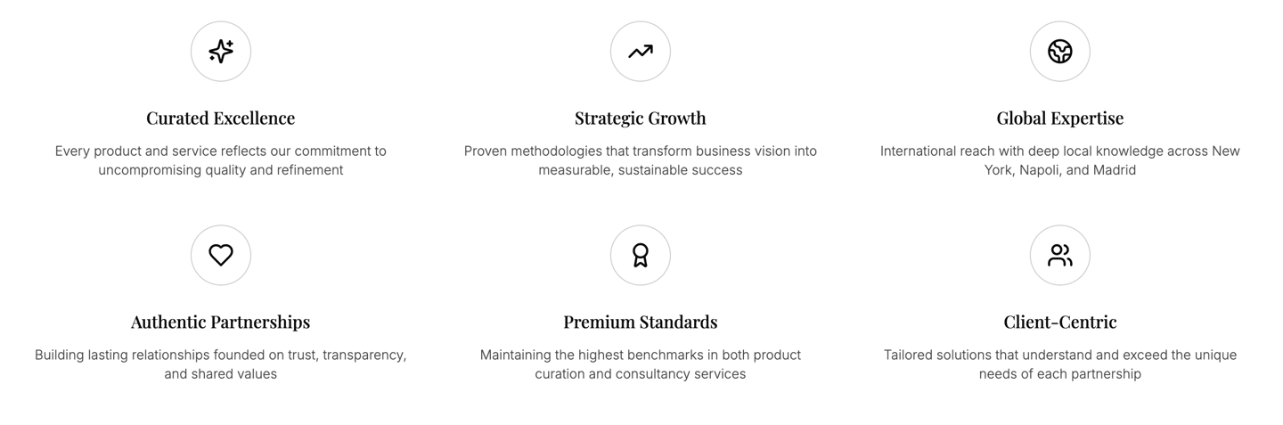 From our offices in New York, Napoli, and Madrid, we've built a global network rooted in trust, expertise, and a shared vision for what premium truly means. Every partnership, every product, every strategy reflects our dedication to excellence without compromise.