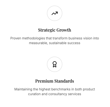 Our dual expertise allows us to not only offer the finest in luxury lifestyle products but also guide ambitious businesses through transformation, expansion, and elevation in the global marketplace.